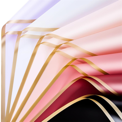 Vente en gros de cadre étanche en plastique à bords dorés papier d'emballage enduit pour bouquet de fleurs personnalisé pour emballage cadeau