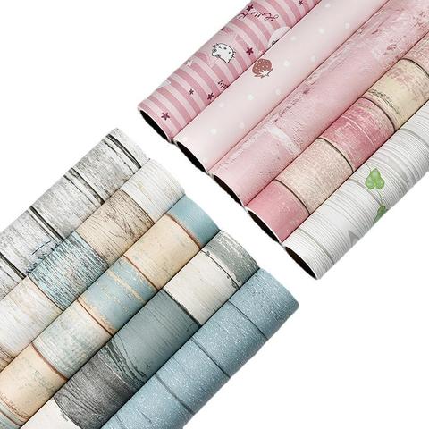 Su geçirmez nem geçirmez ahşap desen karikatür hayvan çocuk çıkartmaları kendinden yapışkanlı duvar kağıdı mobilya yenileme duvar kağıdı